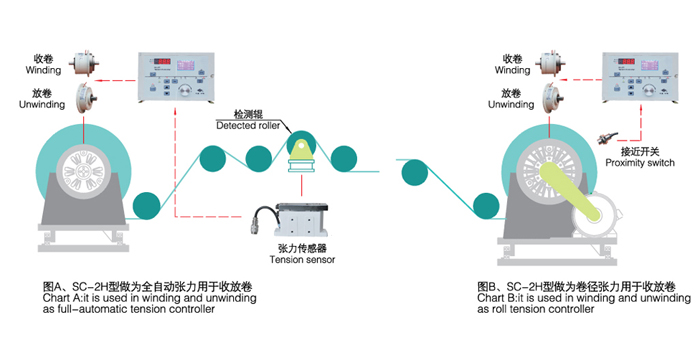 SC-2H型自動張力控制儀采用液晶顯示器,可選擇中、英文顯示,界面友好易用,可輸出0-24V/4A直接驅(qū)動磁粉離合器、磁粉制動器;也可輸出0-5V,0-10V信號,控制變頻器、伺服電機(jī)或其它執(zhí)行機(jī)構(gòu),對卷繞系統(tǒng)進(jìn)行高精度的張力控制。可廣泛應(yīng)用于造紙、印刷、包裝、紡織、印染等行業(yè)。