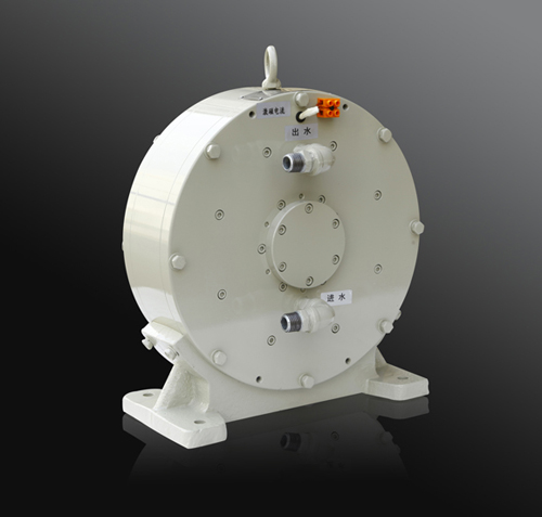 當(dāng)激磁線圈通上直流電時(shí),其產(chǎn)生的磁通經(jīng)左右電樞體、渦流環(huán)、感應(yīng)盤,形成閉合磁路,有與轉(zhuǎn)子形狀猶如直齒輪,當(dāng)感應(yīng)盤被原動(dòng)機(jī)帶動(dòng)旋轉(zhuǎn)時(shí),渦流環(huán)內(nèi)表面產(chǎn)生疏密相間的磁場,該磁場在渦流環(huán)的表面上任一點(diǎn)呈交變變化,因此在渦流環(huán)內(nèi)表面及一定深度范圍內(nèi)產(chǎn)生渦流,由于渦流形成的磁場與原磁場的相互作用,在感應(yīng)盤上就產(chǎn)生了制動(dòng)力矩。