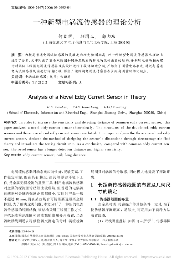 theory and introduces the testing circuit unit. As a conclusion, compared with common eddy-current sen-