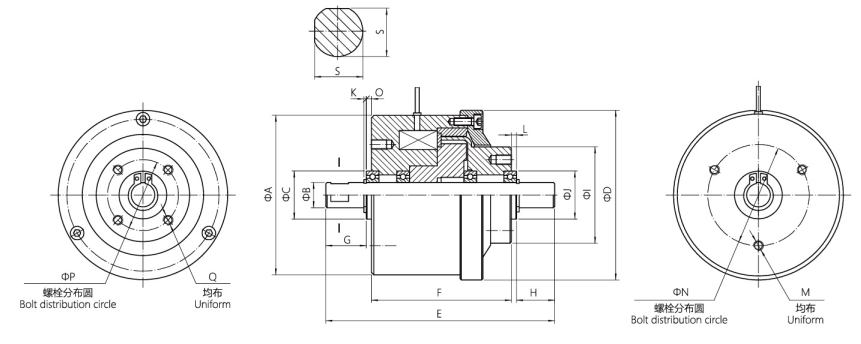 HL-C磁滯離合器外形心寸