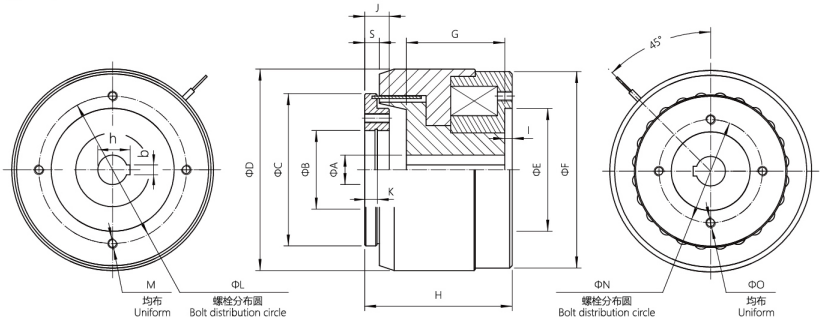 HL-K磁滯離合器外形心寸